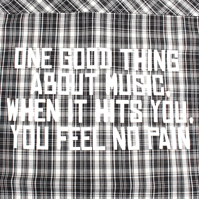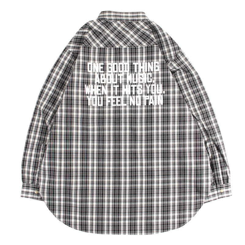 前後差のある着丈のラウンドヘム仕様で程よくルーズなシルエットが魅力の一枚。バックにボブ・マーリーの名曲【TRENCH TOWN ROCK】のリリック『ONE GOOD THING ABOUT MUSIC, WHEN IT HITS YOU, YOU FEEL NO PAIN(音楽の素晴らしいところは、どれほど激しく心に響いても、人を傷つけることはないことだ。)』をオンした一枚。胸ポケット、ヨーク部分の生地を45度回転させ、スタイリングのアクセントに。デニムやチノパンツなどとも相性が良く、デイリーユースからリラックススタイルまで幅広いコーディネートに対応するユニセックスでオススメのアイテムです。