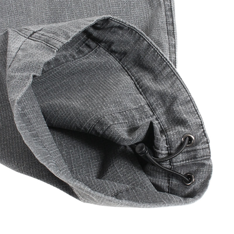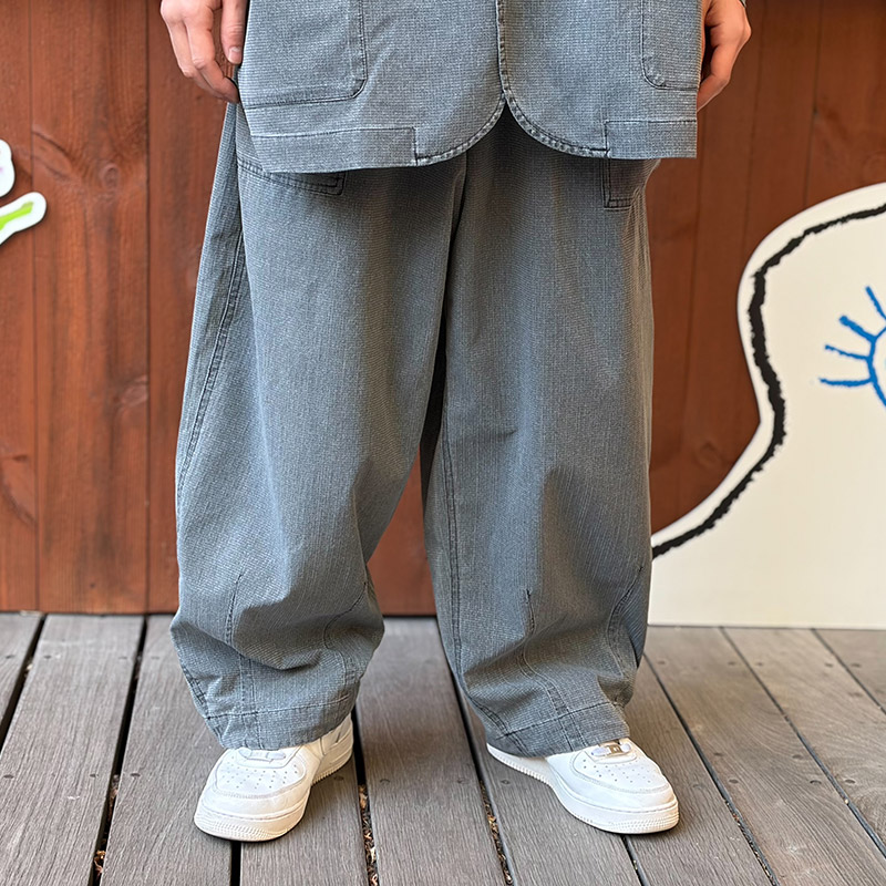 通気性とストレッチ性に優れたTec素材のメッシュ生地を使用したゆったりとしたワイドシルエットのバズーカパンツ。ほとんど透けない程度のメッシュ生地で暖かいシーズンにも快適な着用感の一本。通気性とストレッチ性に優れ、ワイドながらも軽快で、長時間着用してもストレスのない着用感が魅力。ウエストはゴム仕様でイージーな穿き心地。裾にはタックを入れ、さらにドローコード付きでシルエットの調整が可能。フロント左ベルトループの下にDカンを配し、キーホルダーやカラビナなどの小物を下げられる実用的なディテールもポイント。同素材のジャケットとのセットアップコーデもおすすめです。
