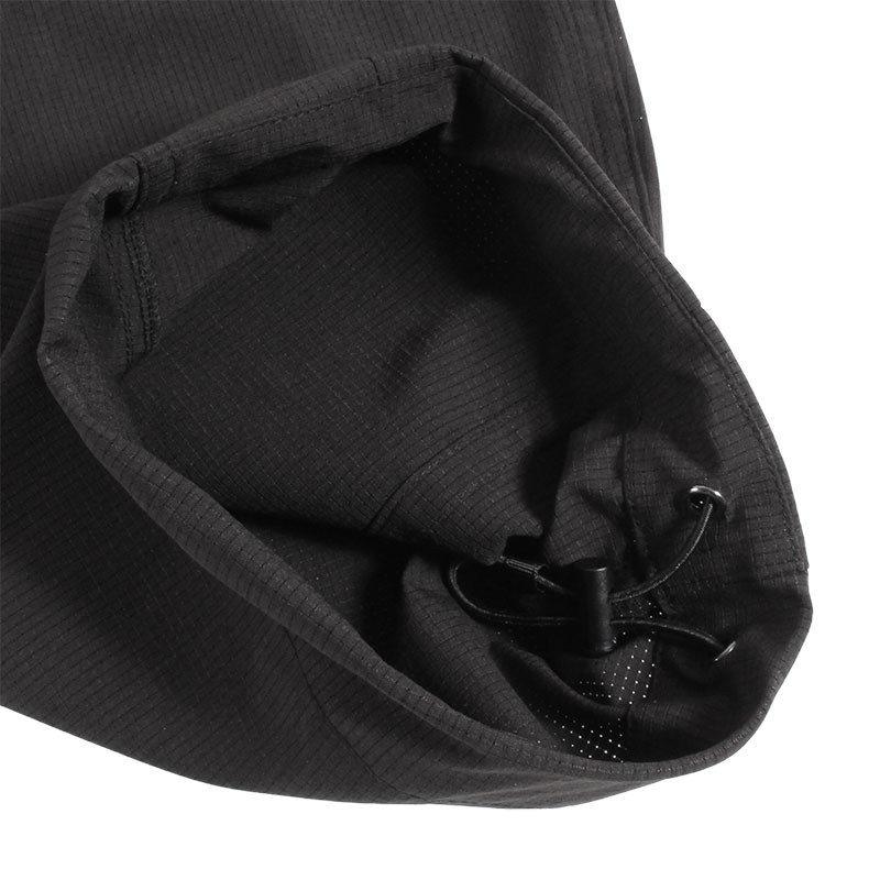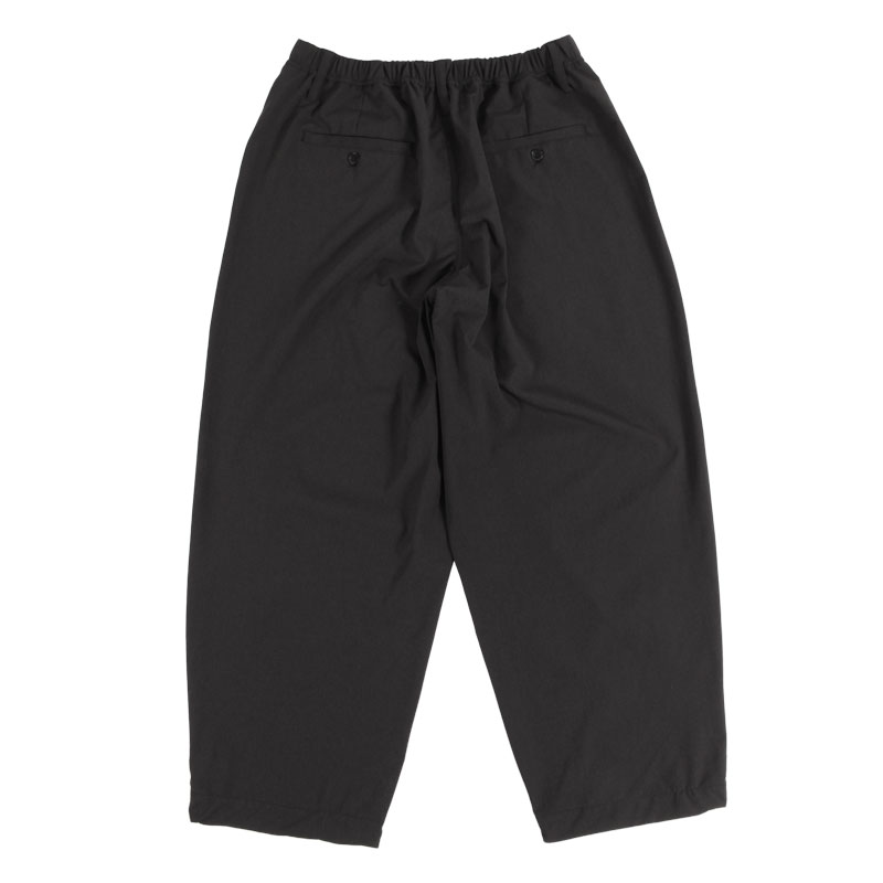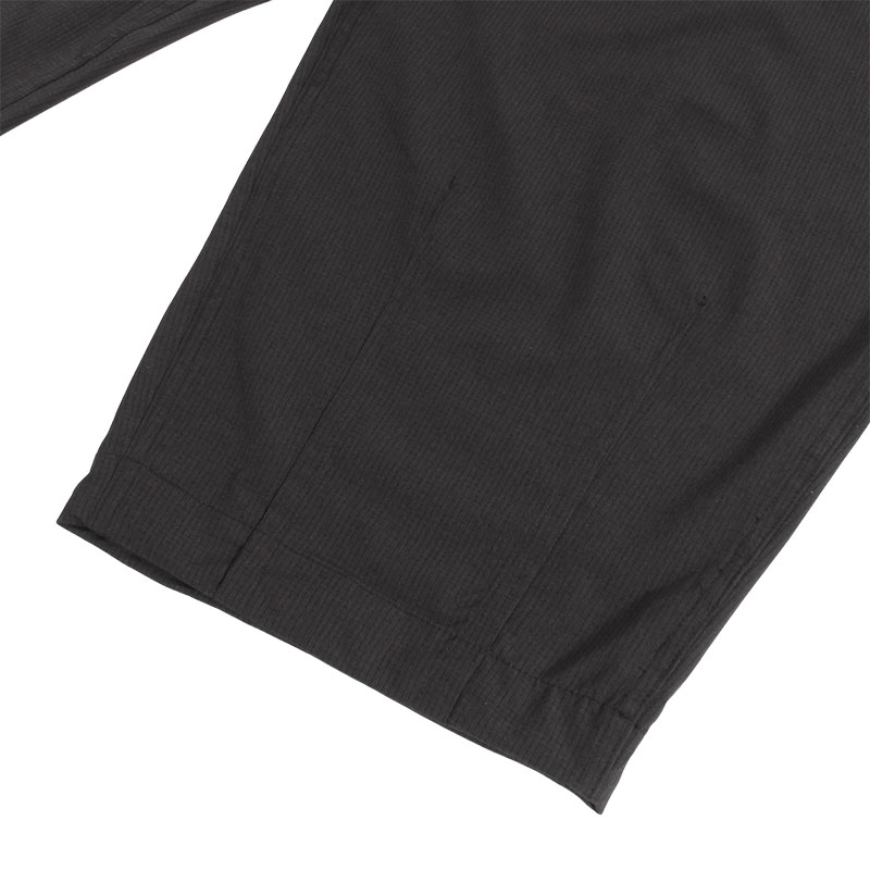 通気性とストレッチ性に優れたTec素材のメッシュ生地を使用したゆったりとしたワイドシルエットのバズーカパンツ。ほとんど透けない程度のメッシュ生地で暖かいシーズンにも快適な着用感の一本。通気性とストレッチ性に優れ、ワイドながらも軽快で、長時間着用してもストレスのない着用感が魅力。ウエストはゴム仕様でイージーな穿き心地。裾にはタックを入れ、さらにドローコード付きでシルエットの調整が可能。フロント左ベルトループの下にDカンを配し、キーホルダーやカラビナなどの小物を下げられる実用的なディテールもポイント。同素材のジャケットとのセットアップコーデもおすすめです。