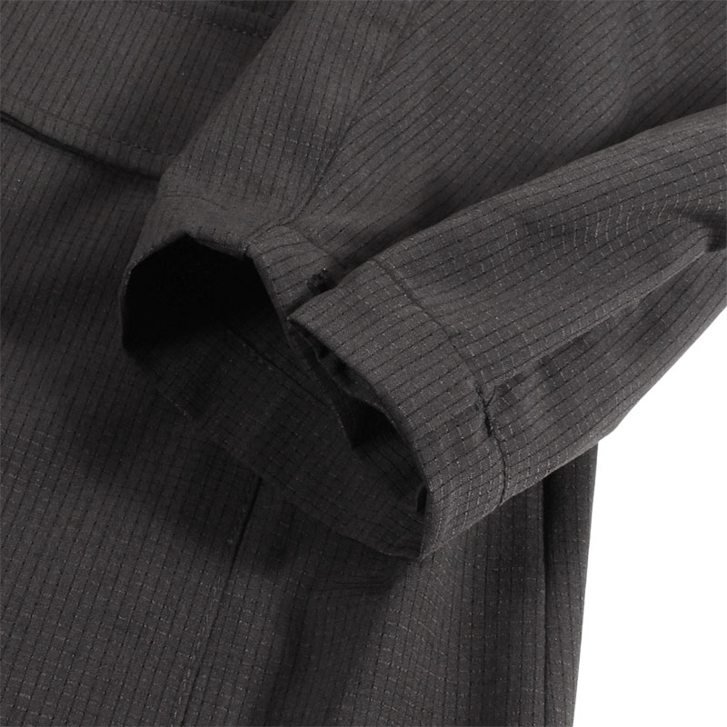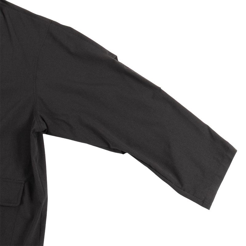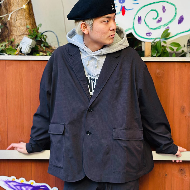 通気性とストレッチ性に優れたTec素材のメッシュ生地を使用し、身幅を広く取ったワイドシルエットでゆったりさらっと着用できるジャケット。ほとんど透けない程度のメッシュ生地で暖かいシーズンにも涼しく羽織れる仕上がり。通気性とストレッチ性に優れ、長時間の着用でも快適な一着。身幅にゆとりを持たせたリラックスシルエットに肘部分にタックを施し腕の可動の邪魔をしにくい仕様で軽やかな着心地が魅力のアイテム。同素材のバズーカパンツとのセットアップスタイルもお楽しみ頂けます。