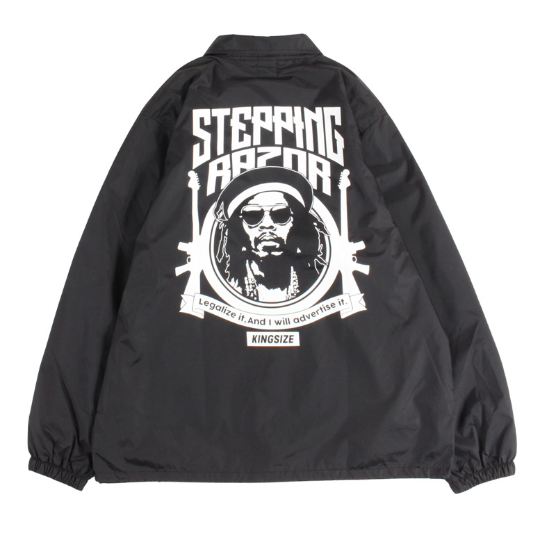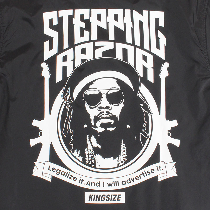 STEPPING RAZORの呼び名を持つレジェンドのグラフィックスをオンしたナイロンコーチジャケット。