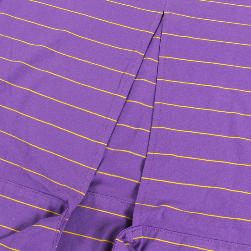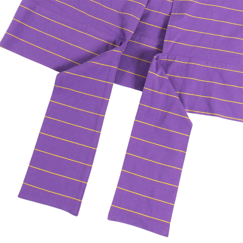 細めのピンストライプボーダーが特徴的なロンTee。胸元にボーダーカラーと同系色でグルーピーロゴを刺繍しました。後ろに大胆なスリットを入れ、裾の共地リボンをしばって着用するデザイン。好みの位置でしばれるのでボトムに合わせて丈感を調節できます。ストレッチの効いた生地でリラックスして着用でき、ルーズな印象の長め袖もポイントです。
