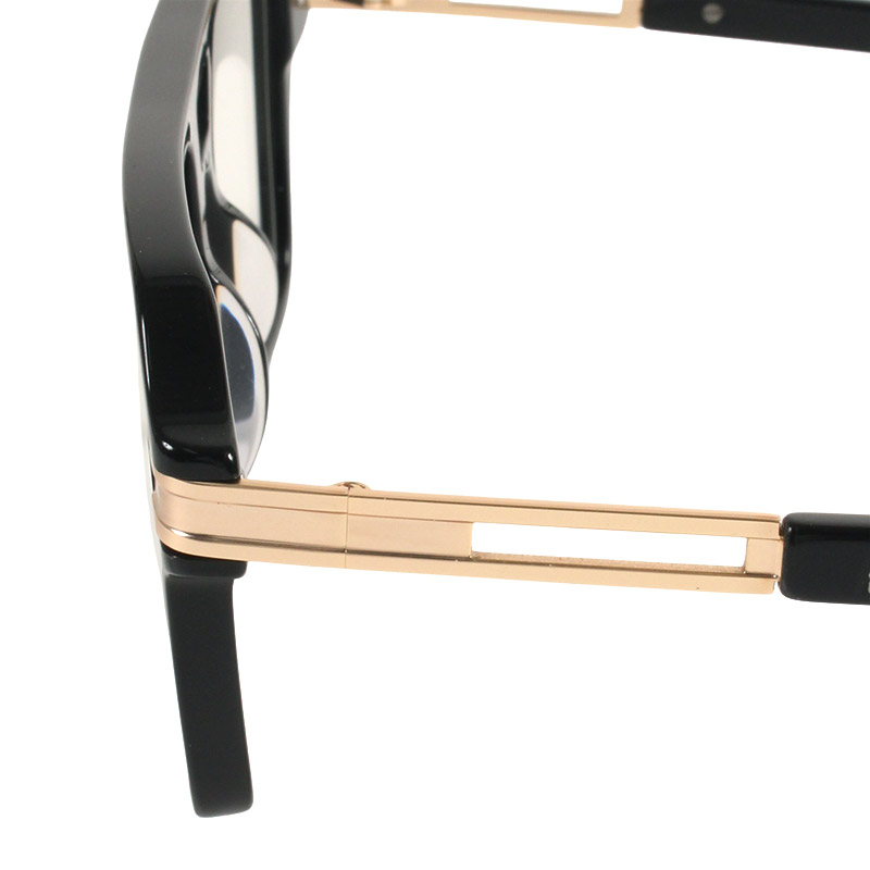 ストリートシーンで人気の重厚感溢れるデザインのアイウェアが登場。太めのブラックフレームに、ゴールドのメタルテンプルを組み合わせたラグジュアリーな配色が、フェイス周りを華やかに、そして力強く演出します。特徴的なダブルブリッジデザインが、ヴィンテージの風合いを残しつつも、シャープなスクエアシェイプに仕上げることで現代的な印象に。知的な雰囲気のクリアレンズでストリートスタイルにはもちろん、モードやカジュアルスタイルにも存在感を発揮するユニセックスアイテム。ブランドロゴをオンしたオリジナルハードケースが付属。