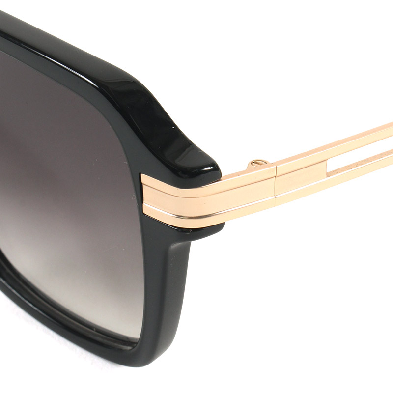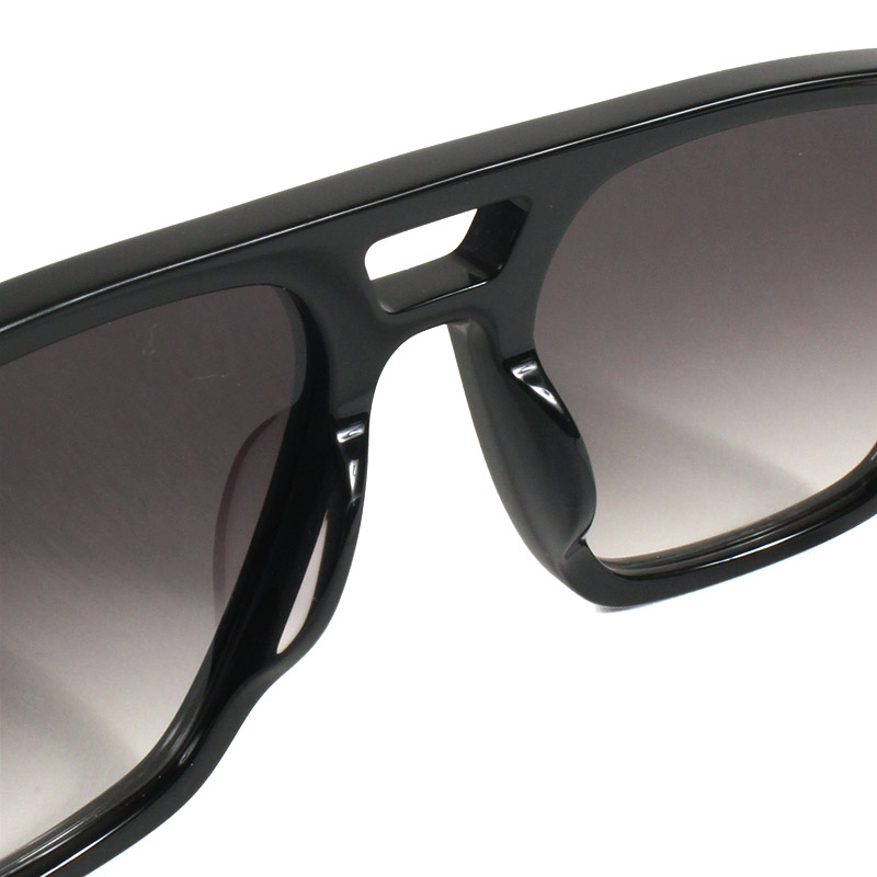 ストリートシーンで人気の重厚感溢れるデザインのアイウェアが登場。太めのブラックフレームに、ゴールドのメタルテンプルを組み合わせたラグジュアリーな配色が、フェイス周りを華やかに、そして力強く演出します。特徴的なダブルブリッジデザインが、ヴィンテージの風合いを残しつつも、シャープなスクエアシェイプに仕上げることで現代的な印象に。こなれ感を演出するグラデーションレンズでストリートスタイルにはもちろん、モードやカジュアルスタイルにも存在感を発揮するユニセックスアイテム。ブランドロゴをオンしたオリジナルハードケースが付属。