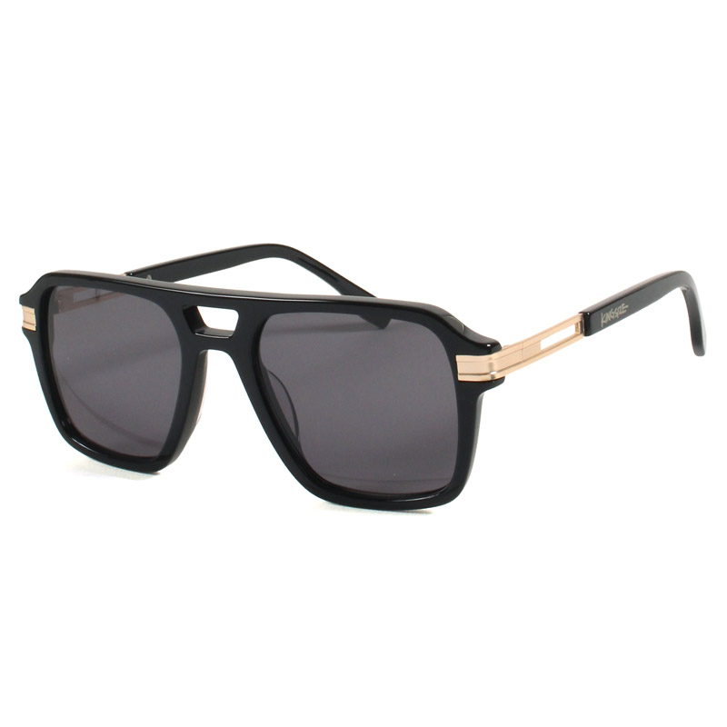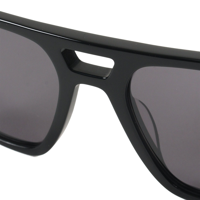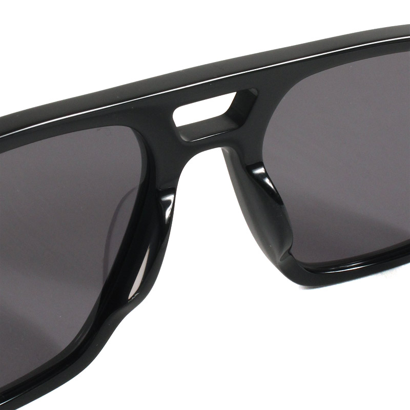 ストリートシーンで人気の重厚感溢れるデザインのアイウェアが登場。太めのブラックフレームに、ゴールドのメタルテンプルを組み合わせたラグジュアリーな配色が、フェイス周りを華やかに、そして力強く演出します。特徴的なダブルブリッジデザインが、ヴィンテージの風合いを残しつつも、シャープなスクエアシェイプに仕上げることで現代的な印象に。定番のスモークレンズでストリートスタイルにはもちろん、モードやカジュアルスタイルにも存在感を発揮するユニセックスアイテム。ブランドロゴをオンしたオリジナルハードケースが付属。