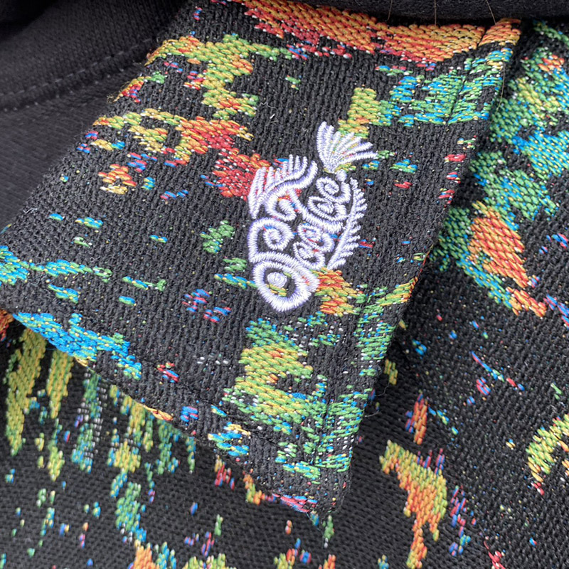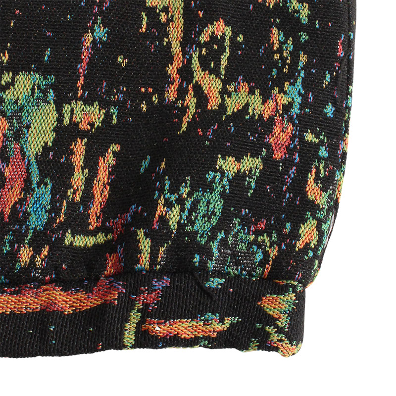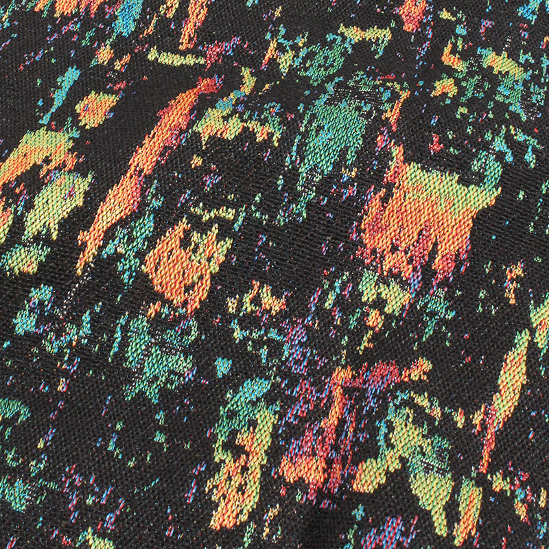 キャンバスへ大胆にペイントを施したような抽象的なグラフィックスをゴブラン織り特有の立体感あるテクスチャで仕上げた一着。襟元にフィッシュロゴをさりげなく刺繍しました。重厚感のある肉厚な生地ながら、リラックス感のあるゆったりとしたサイジングに仕上げているので、パーカやスウェット、ニットなどとのレイヤードスタイルにも大活躍するアイテムです。夜の街に溶け込むような深みのある表情が魅力。様々なスタイリングに大活躍するユニセックスアイテムです。