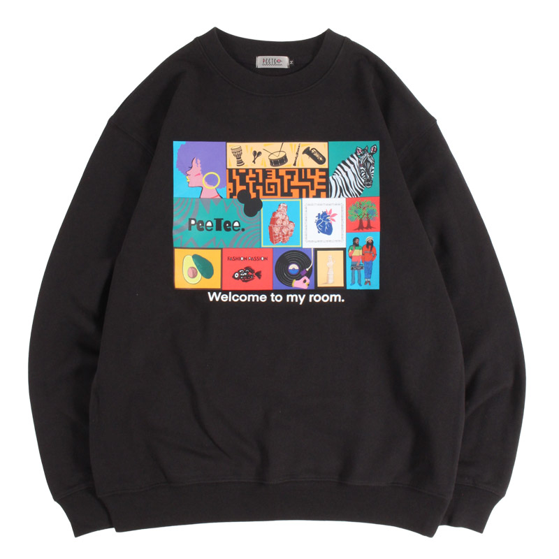 【予約】PeeTee. (ピーティー) “WELCOME TO MY ROOM CREW SWEAT” [PTSS26-T21 Black]