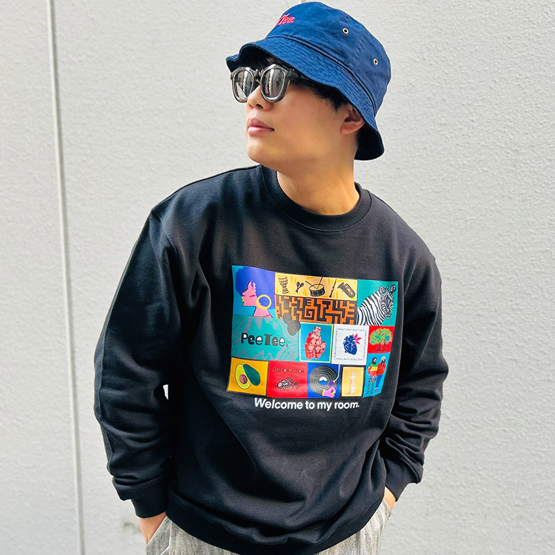 PeeTee. (ピーティー) “WELCOME TO MY ROOM CREW SWEAT” [PTSS26-T21 Black]