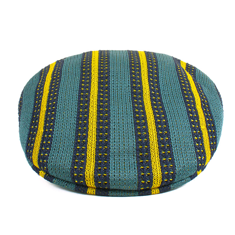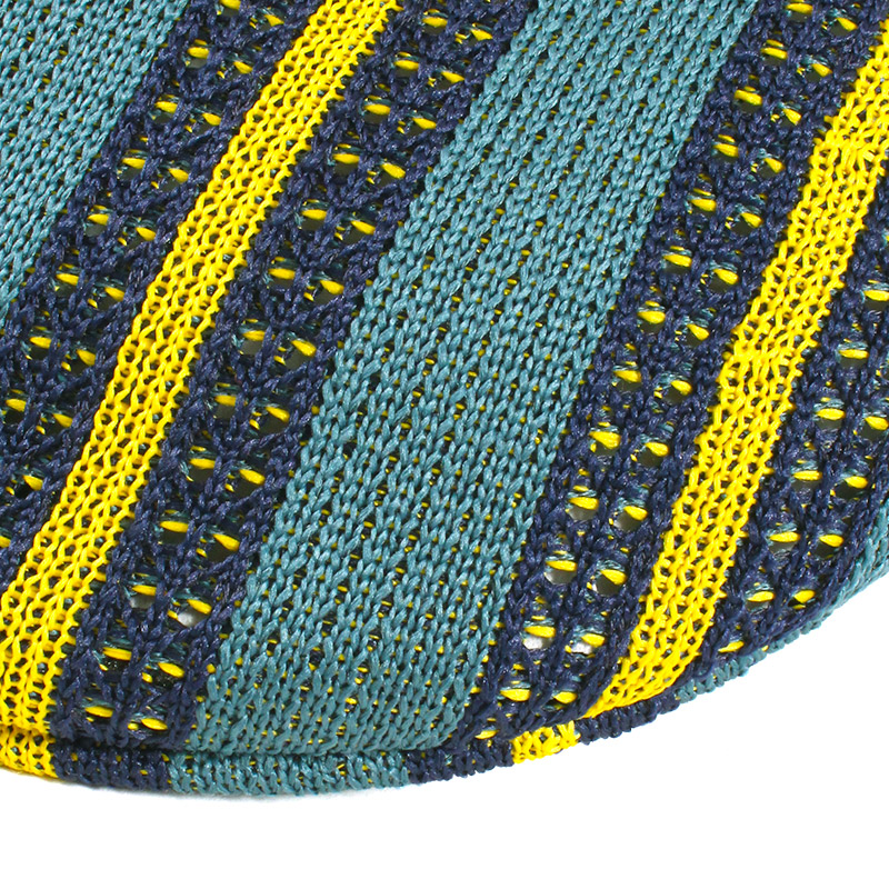 KANGOLの定番素材である「Tropic」糸に、環境に配慮したリサイクルポリエステル糸をブレンドした「504」モデル。3色の糸で丁寧に編み上げられたジャカードストライプ柄が、奥行きのある表情を演出。デザイン性だけでなく、通気性を高めるメッシュ状の編み地を採用しており、暑い日でも快適な着用感をキープします。見た目にも涼やかで、夏のリゾートやバケーションシーンのスタイリングを格上げする仕上がりです。