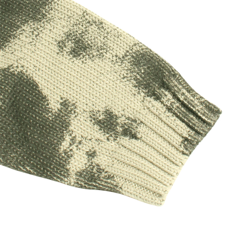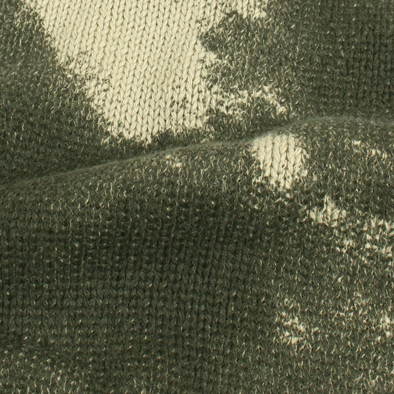 表情豊かなムラ染めの様なプリントを施したスプリングニット。