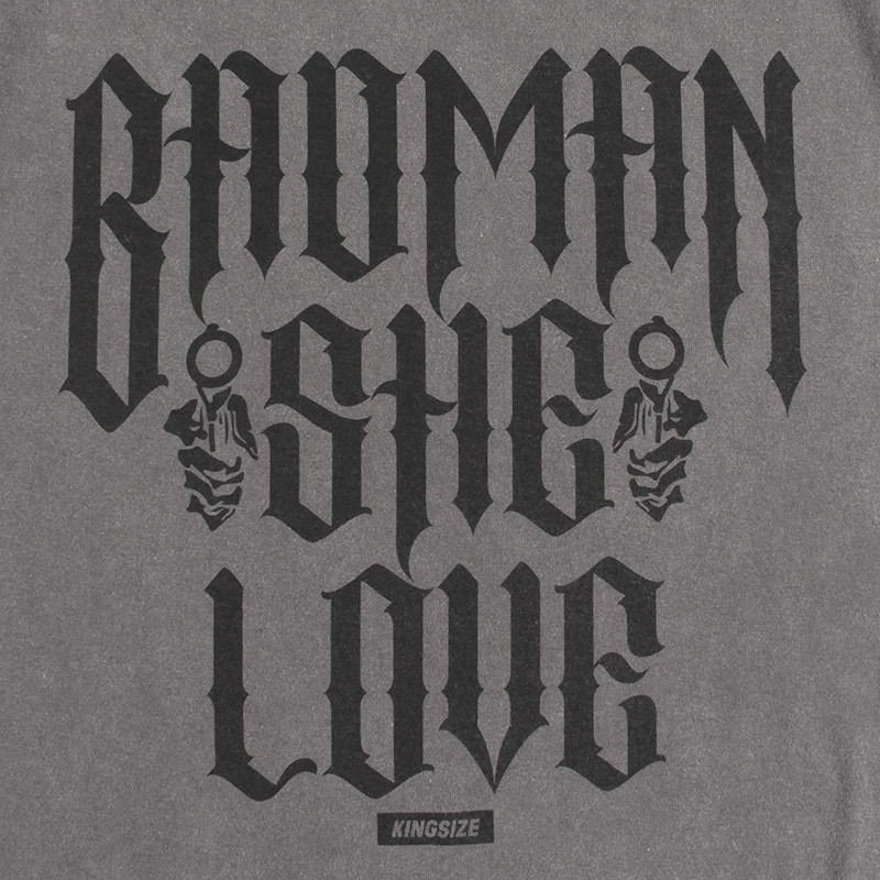 KINGSIZE(キングサイズ)“BADMAN SHE LOVE TEE” [KSSS26-T28 Fade Grey]