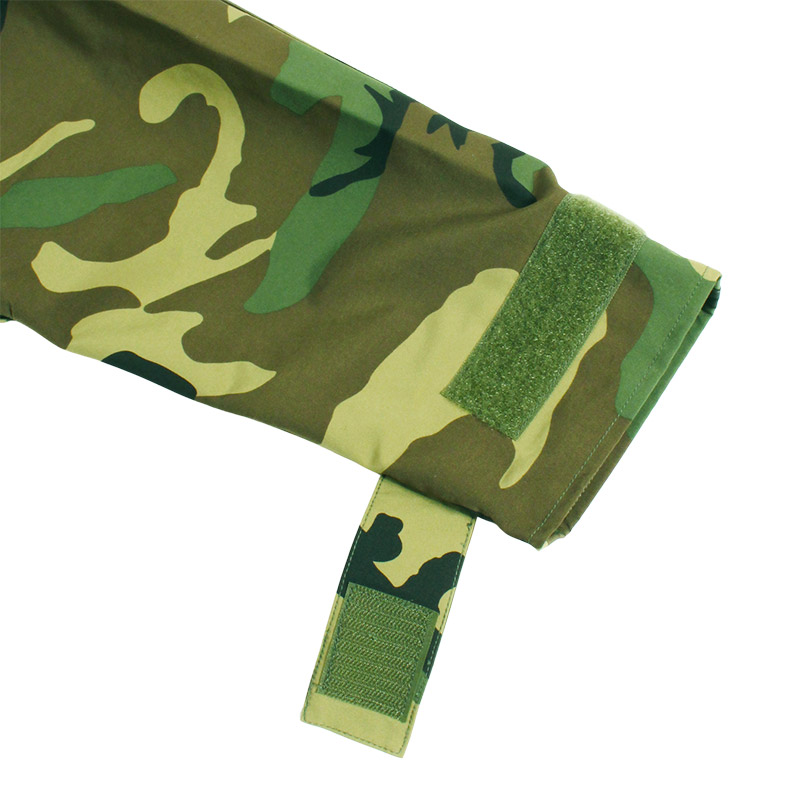 オーセンティックなウッドランドカモ柄に、鮮やかなオレンジのDRAWロゴのワンポイント刺繍がアクセントになった定番人気のマウンテンジャケット。フロントはダブルジッパーとスナップボタンで開閉。内側のウエスト部分はゴムの絞りになっており、外気の進入を防ぎます。脇から腕にはジッパーで大きく開くベンチレーション付き。前立て内にはマジックテープ開閉の胸ポケット(フロントジッパーを開けずに開閉可能)など機能性抜群の一着。本格的なミリタリースペックを感じさせつつ、タウンユースとしても重宝し、ゆったりとしたシルエットで春秋にはライトアウターとして、夏にはレインウェアとして、冬にはインナーにフリースなどを重ね着することで非常に保温性の高い防寒アウターとしてシーズンを通して活躍するアウターです。