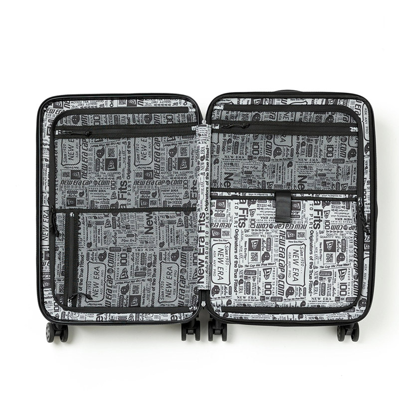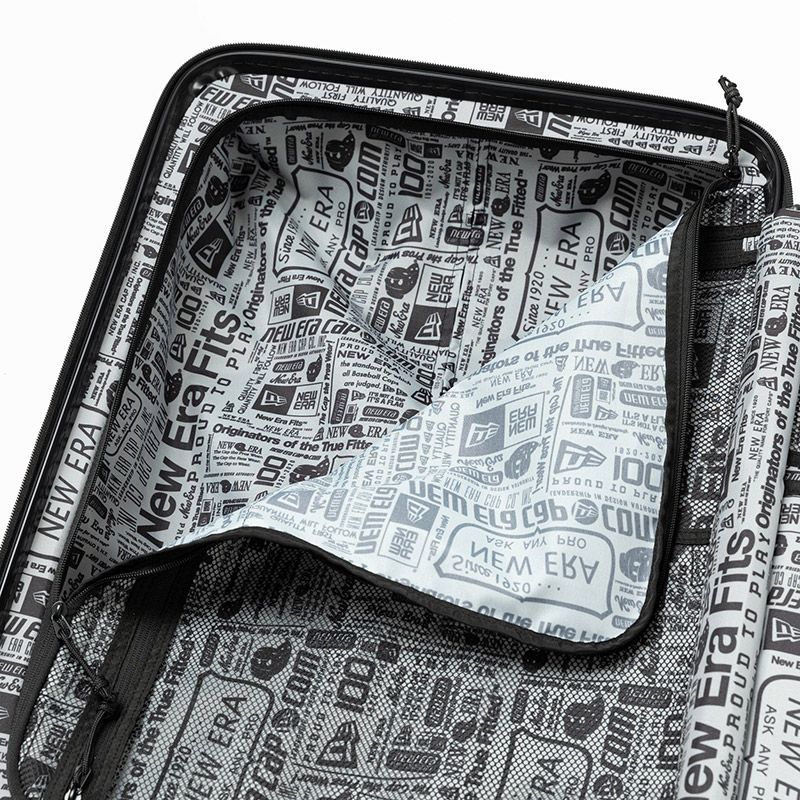 New Era Flagロゴがエンボスで入るオリジナルボディーを採用したキャリーケース。