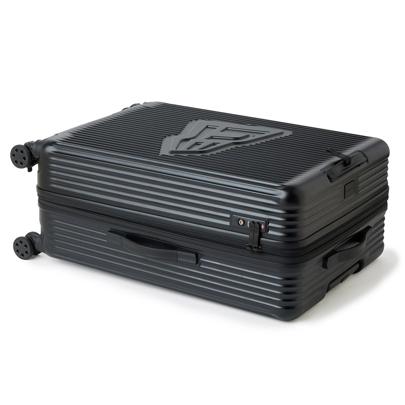 New Era Flagロゴがエンボスで入るオリジナルボディーを採用したキャリーケース。