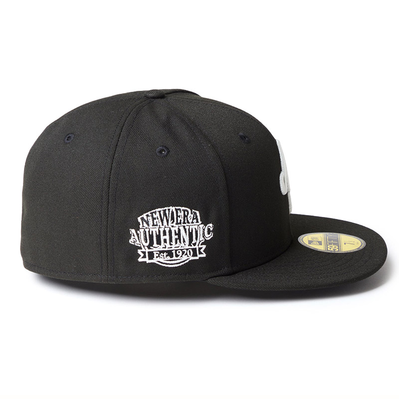 シルエットはニューエラを代表するスタイルの59FIFTY。フロントパネルの内側に独自の芯を作ることで型崩れしにくいクラシックなシルエット。 サイズ調整のない仕様で、約1cm刻みのサイズ展開。頭の小さい方から大きな方まで、ジャストサイズで被ることができます。また、アジャスターがないので、リアのシルエットが美しく、頭の形が綺麗に見えます。