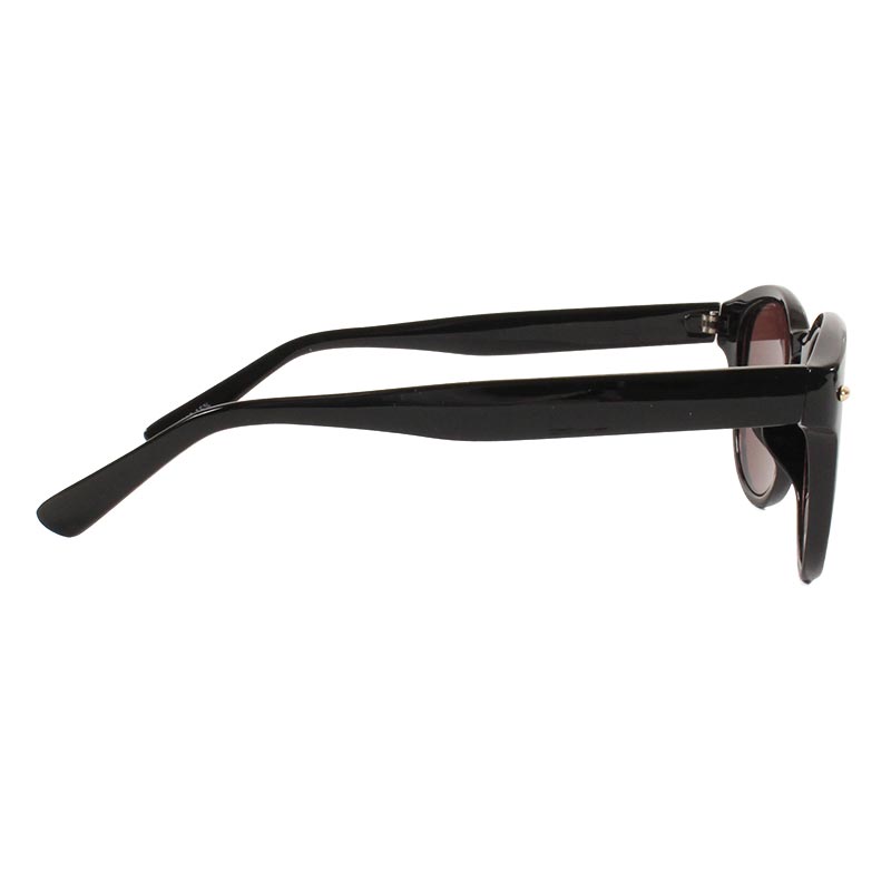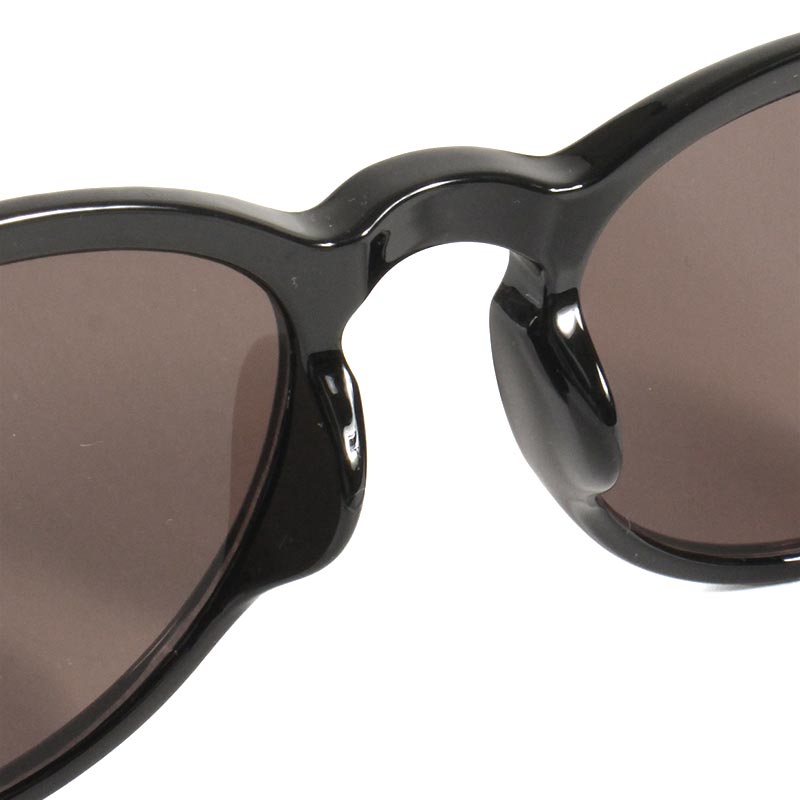 流行に左右されない丸みを帯びた知的なボストンシェイプをベースに、サイドのテンプル部分にエッジの効いたロゴデザインを落とし込んだ1本。顔馴染みの良いブラックフレームに、落ち着いたスモークレンズの組み合わせが、様々なコーディネートにも自然に溶け込みます。キャップやバケットハットとの相性も抜群で日差しの強い日のアクティビティから、スタイリングののアクセントとして、オールシーズン活躍する一軍アイテムです。可視光線透過率は、日差しの強い屋外でも眩しさをしっかりカットする【15%】を採用。ドライブやフェス、ビーチなどのアクティブなシーンでも目が疲れにくく、実用性は抜群です。濃いめのスモークレンズは、着用者の目元が透けにくいため、スタイリッシュな印象を与えてくれます。ブランドロゴをオンしたオリジナルハードケースが付属。