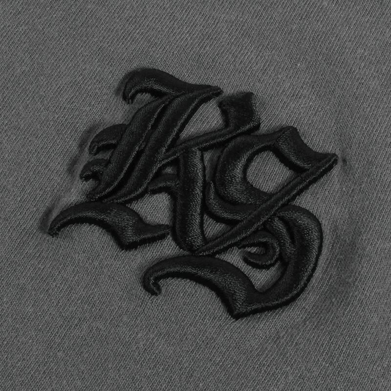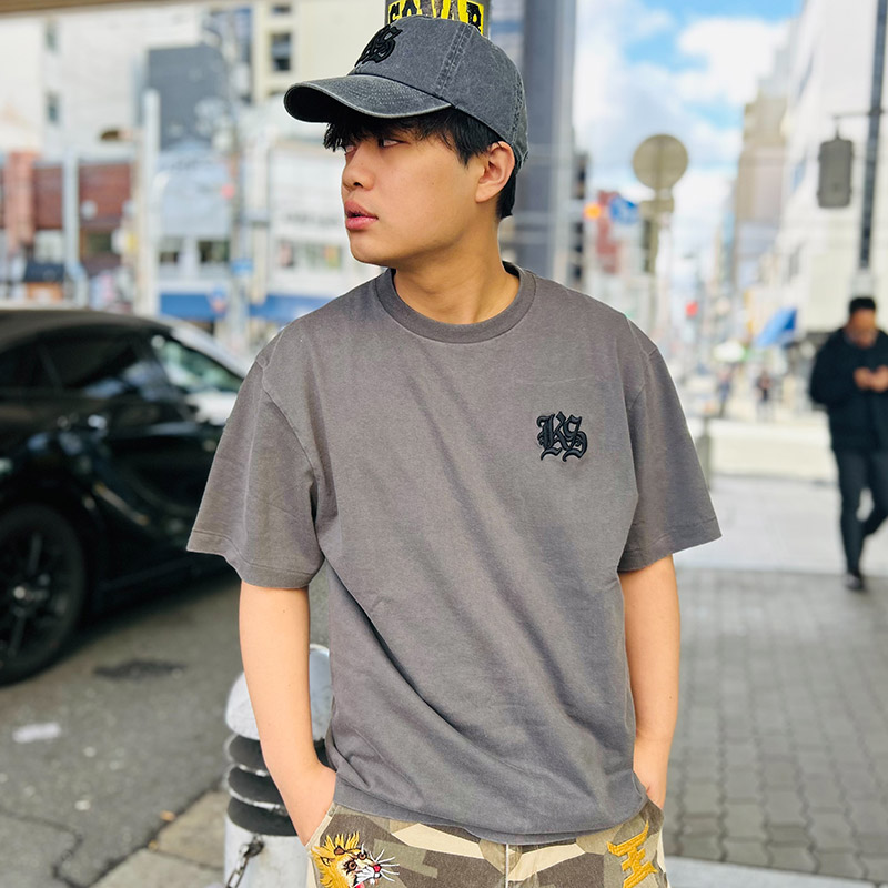 胸元に施されたのは、タフなストリートの象徴とも言えるオールドイングリッシュフォントの「KS」ロゴ。緻密に打ち込まれた立体感のある刺繍が、フラットなプリントにはない高級感と奥行きを演出します。バックにもワンポイントでロゴ刺繍を施したました。ボディ全体に、絶妙な色落ちを表現するフェード加工を施し、新品でありながら、ヴィンテージTシャツのようなこなれた表情を楽しめます。6.2オンスのオープンエンド糸を使用した生地は、シャリ感のあるアメリカンライクな仕上がりで、ステッチ周りのアタリや絶妙なムラ感が、コーディネートに深みを与え、1枚で着てもサマになる主役級の仕上がりです。フェードグレーのボディにブラック刺繍でシックな佇まいに仕上げました。ヴィンテージライクなフェード加工と、胸元に鎮座するオールドイングリッシュロゴ。シンプルながらも確かな存在感を放つ、大人のストリートスタイルにふさわしい1枚です。