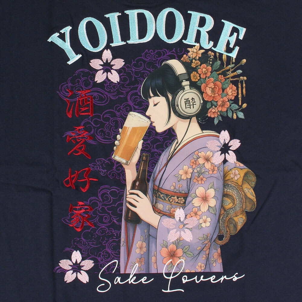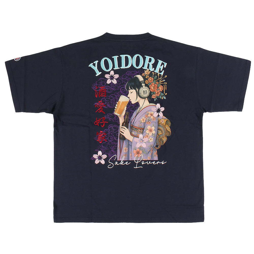 YOIDORE (ヨイドレ) “ビール好き着物女子 TEE” [826217 Navy]