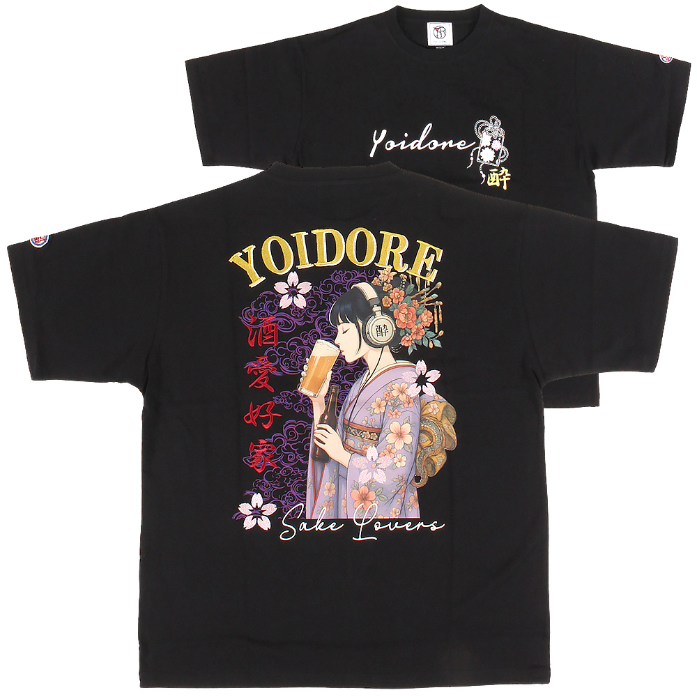 YOIDORE (ヨイドレ) “ビール好き着物女子 TEE” [826217 Black]
