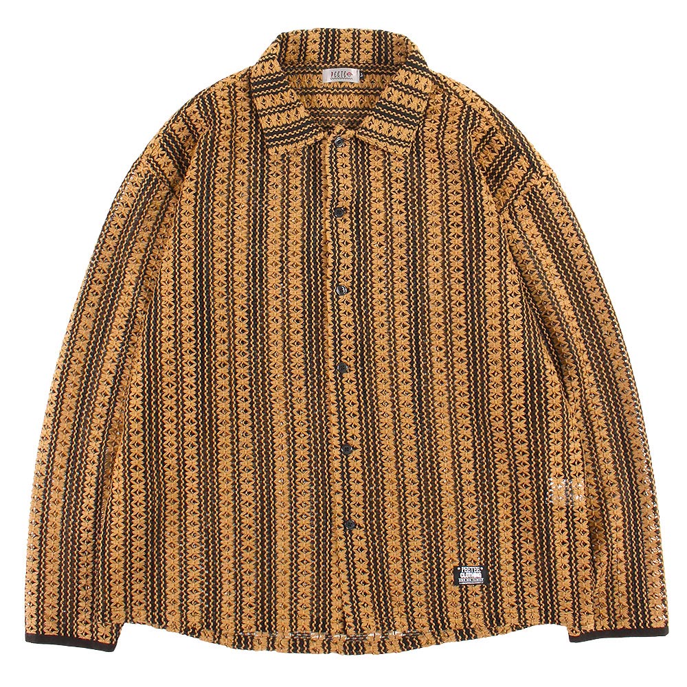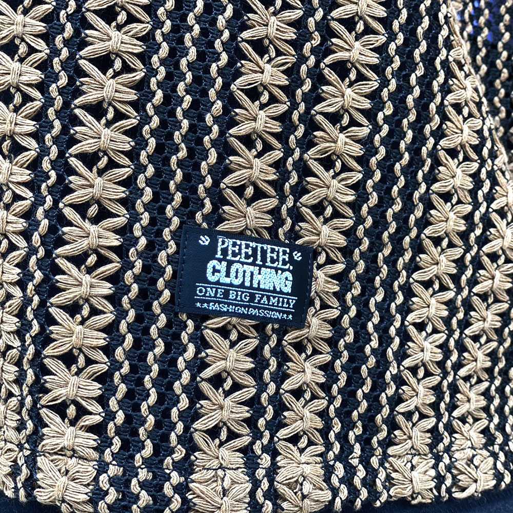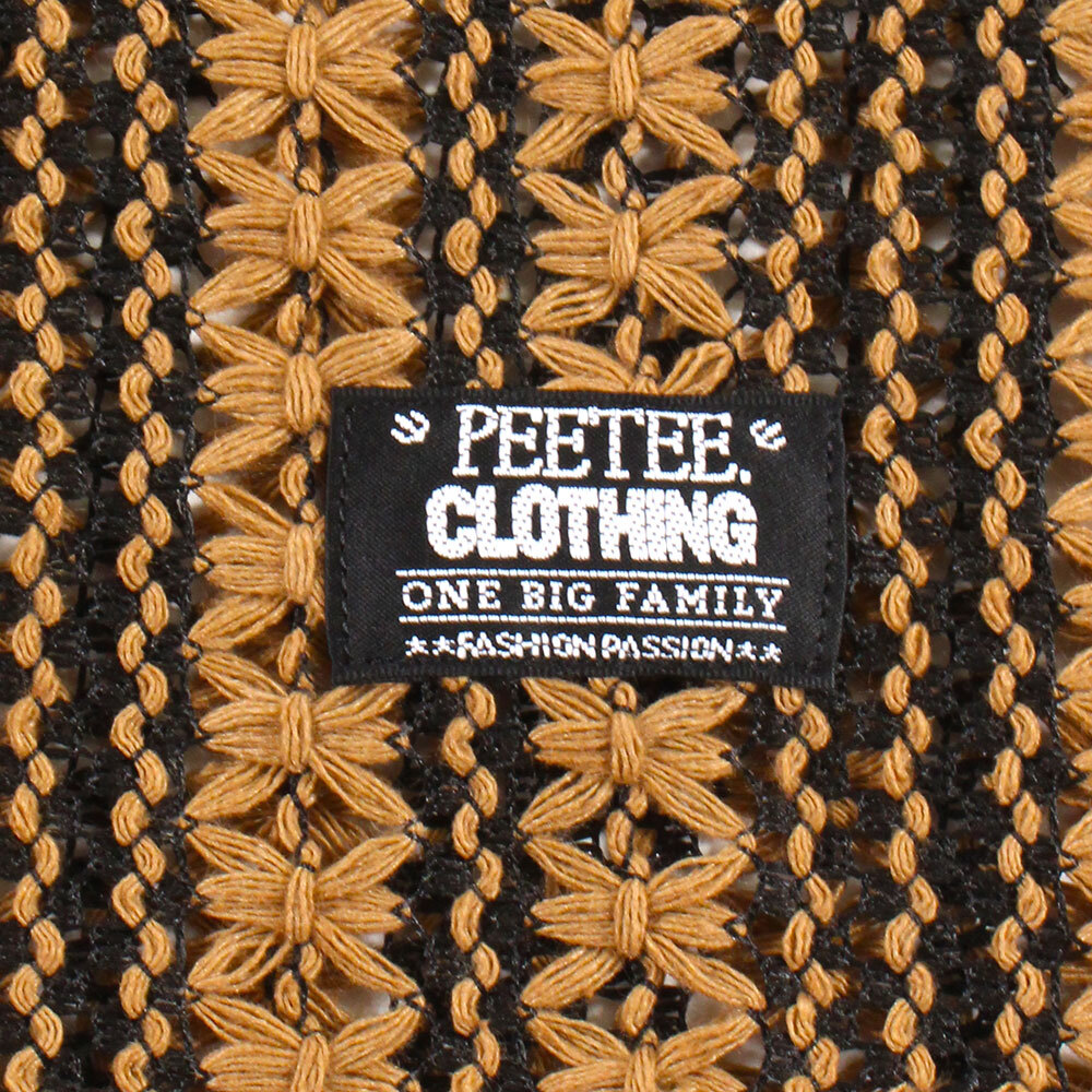 花柄を模した緻密なツートンストライプが目を引く、PeeTee.の新作L/Sシャツ。最大の特徴は、かぎ編み(クロシェ)で表現された透け感のあるメッシュ素材。通気性に優れ、インナーとのレイヤード次第で表情がガラリと変わる遊び心溢れる一着です。ゆったりとしたボックスシルエットが、総柄の存在感を程よく中和し、春夏のメインアイテムとしてはもちろん、秋口の羽織りとしても重宝する、まさに「魅せる」ストライプシャツに仕上がっています。ブランドのアイデンティティである「ONE BIG FAMILY」のタグを裾にオン。ロングシーズン大活躍するユニセックスでおすすめのアイテムです。