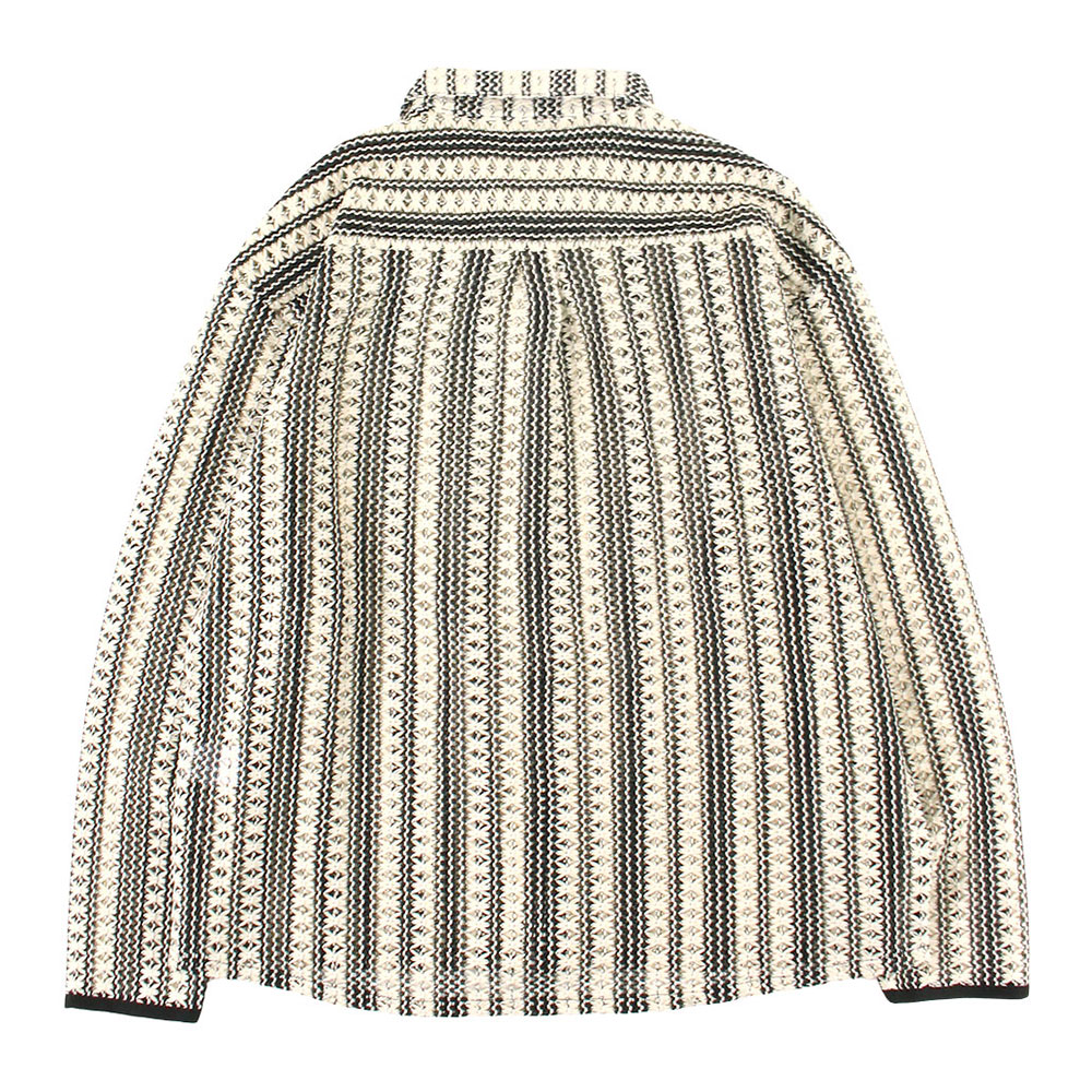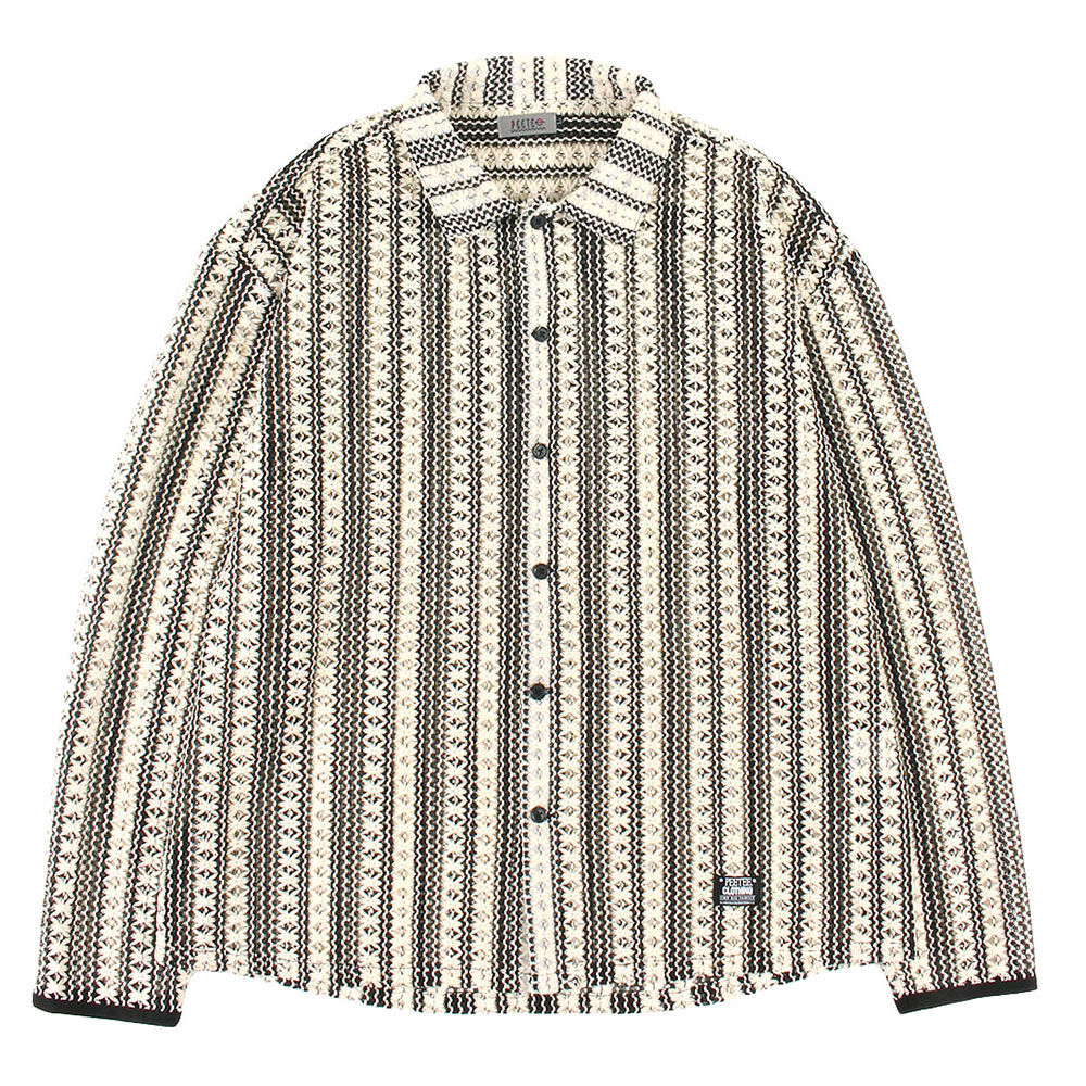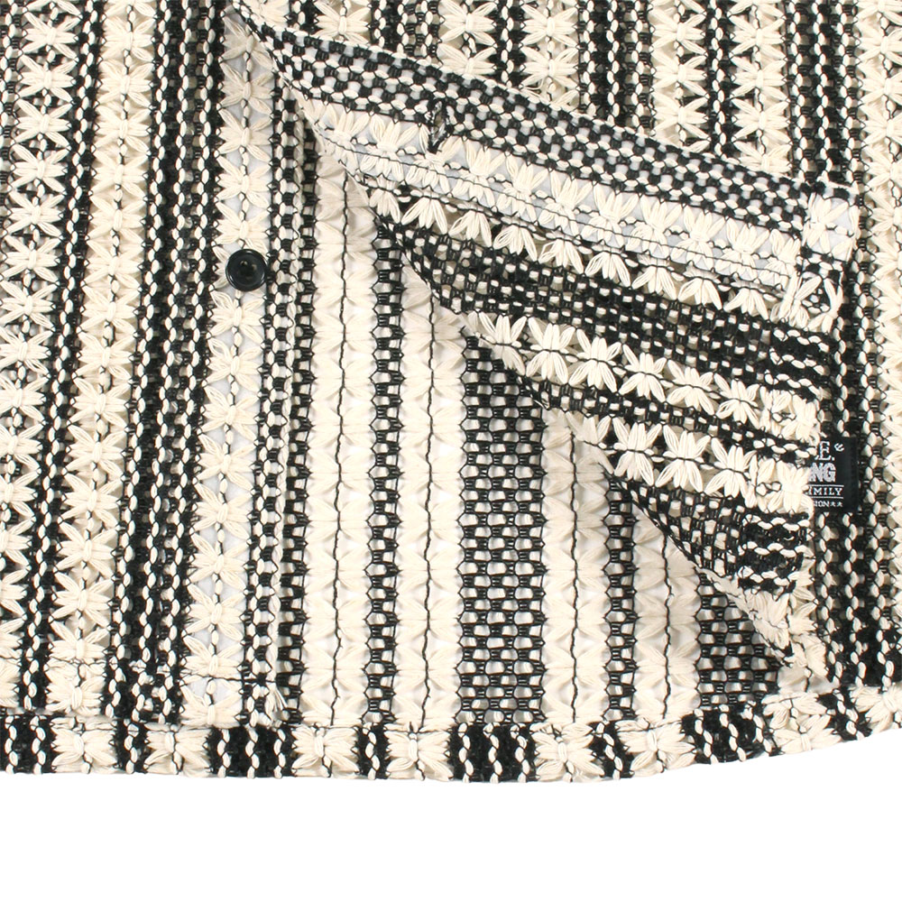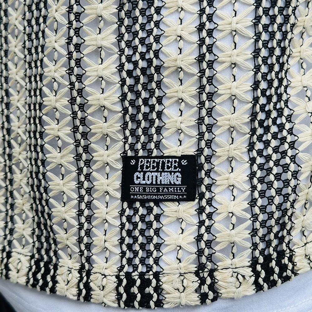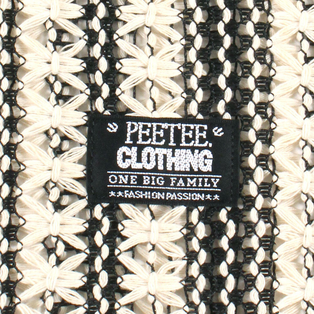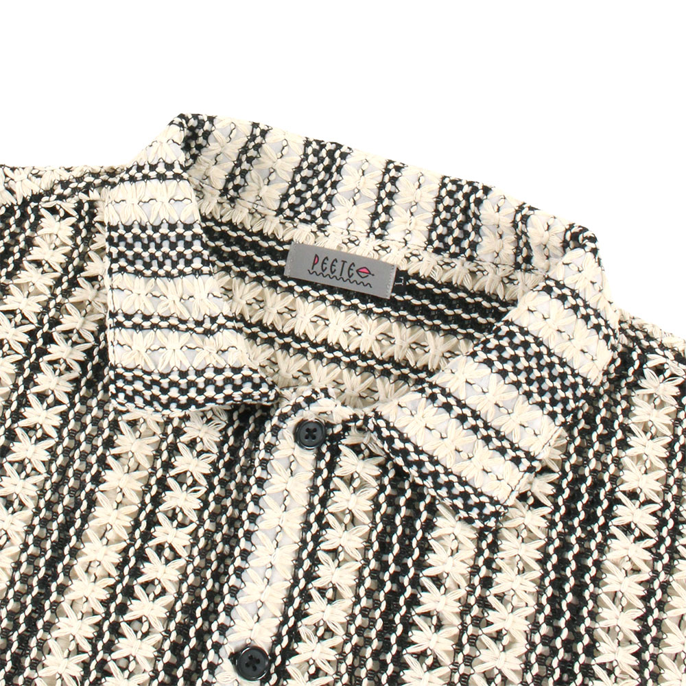 花柄を模した緻密なツートンストライプが目を引く、PeeTee.の新作L/Sシャツ。最大の特徴は、かぎ編み(クロシェ)で表現された透け感のあるメッシュ素材。通気性に優れ、インナーとのレイヤード次第で表情がガラリと変わる遊び心溢れる一着です。ゆったりとしたボックスシルエットが、総柄の存在感を程よく中和し、春夏のメインアイテムとしてはもちろん、秋口の羽織りとしても重宝する、まさに「魅せる」ストライプシャツに仕上がっています。ブランドのアイデンティティである「ONE BIG FAMILY」のタグを裾にオン。ロングシーズン大活躍するユニセックスでおすすめのアイテムです。