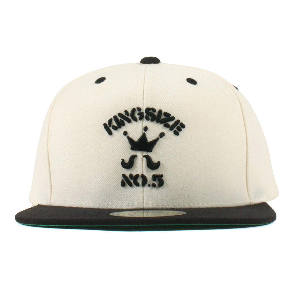 KINGSIZEの代名詞ともいえる「HiGEロゴ」と「No.5」をフロントに配した、ブランドアイデンティティ溢れるスナップバック。