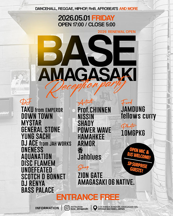 BASE AMAGASAKI Reception Party -2026 RENEWAL OPEN- [2026年5月1日(金)]