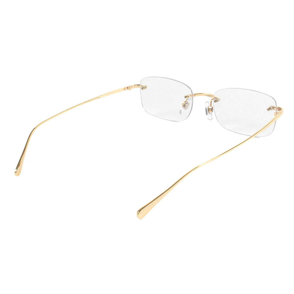 フレームを排したリムレス(フチなし)仕様に、清涼感あふれるクリアレンズを組み合わせた、クリーンで洗練されたデザインが特徴のアイウェア。クリアレンズ採用で、屋内外を問わず着用でき、「透明感のあるモードスタイル」を楽しめます。軽量なメタルフレームによる快適な掛け心地も魅力。テンプルエンドにはさりげなくブランドロゴを刻印。アクセサリー感覚で取り入れられスタイリングに「軽さ」と「高級感」をプラスしてくれるアイテムです。UVカット率は99%以上で紫外線対策もバッチリ。デイリーユースはもちろん、レジャーやリゾートシーンにもおすすめなユニセックスアイテムです。ブランドロゴをオンしたオリジナルハードケースが付属。